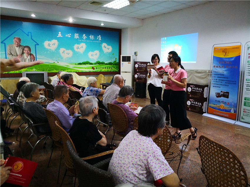 在養(yǎng)老院的會(huì)議室,廣佛聯(lián)絡(luò)處醫(yī)療界面經(jīng)理黃巧芬為老人們進(jìn)行了預(yù)防中風(fēng)健康知識(shí)的宣傳和有獎(jiǎng)問(wèn)答,活動(dòng)過(guò)程,志愿者們與老人們親切的拉家常,聽(tīng)他們講述生活中的故事。