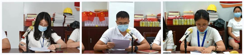 黎智勇、陳三妹、楊滔分別宣讀轉(zhuǎn)正申請書